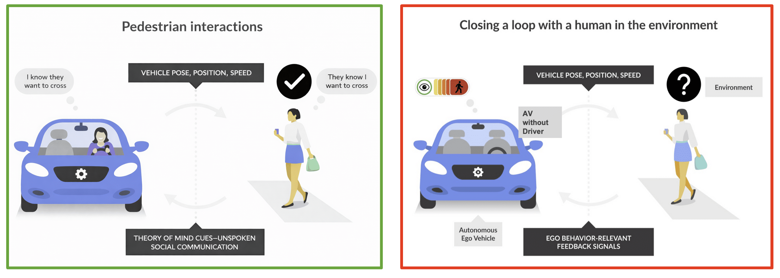 The next stage focused on what SPIU should actually communicate and how it should be designed. Through expert discussions, scenario sketches, and comparisons with multimodal LLM-generated proposals, the research mapped where human expectations and AI suggestions converged and diverged for safe pedestrian-AV interaction. This phase transformed SPIU from a simple signaling concept into a richer multimodal framework that can combine clear visual messages with complementary elements such as audio feedback, sensing, LiDAR, and V2X-based coordination. It also clarified an important design principle: SPIU is most valuable when it complements vehicle eHMI rather than replaces it.